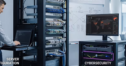 Robust network design, Wi-Fi installation, cybersecurity, and server configuration.