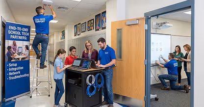 End-to-end technology support for schools, including device setup, classroom tech integration, network configuration, and ongoing troubleshooting.